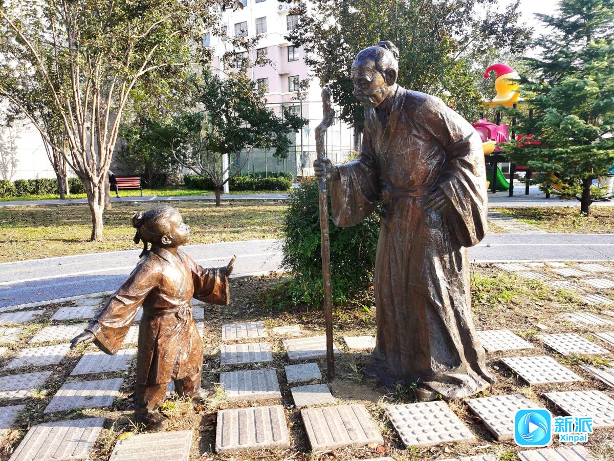 公园入口处设有一组郑板桥与孩童对话的雕塑。孩子仰头询问的神情充满好奇,与公园“求知”的主题完美契合。