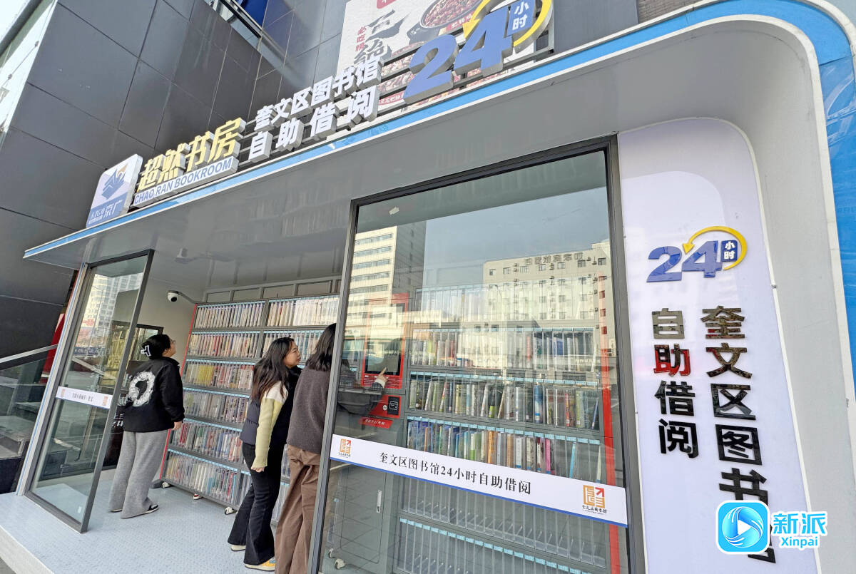 在奎文区泰华商圈,“超然书房——奎文区图书馆24小时自助借阅”吸引了市民。新派融媒体记者 张驰 摄
