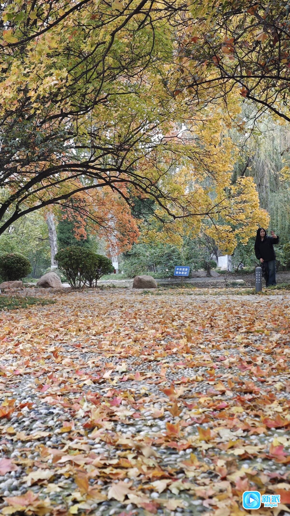 新派讯 11月6日,记者走进潍坊市人民公园,“落叶缓扫”的温情随处可见,在主园路保持整洁的同时,管理单位对枫林广场等景观区域实行精细化保洁,让落叶成为限定美景。