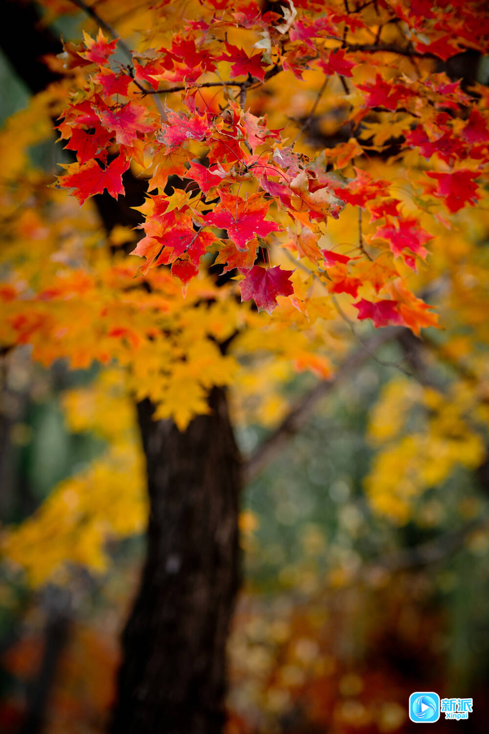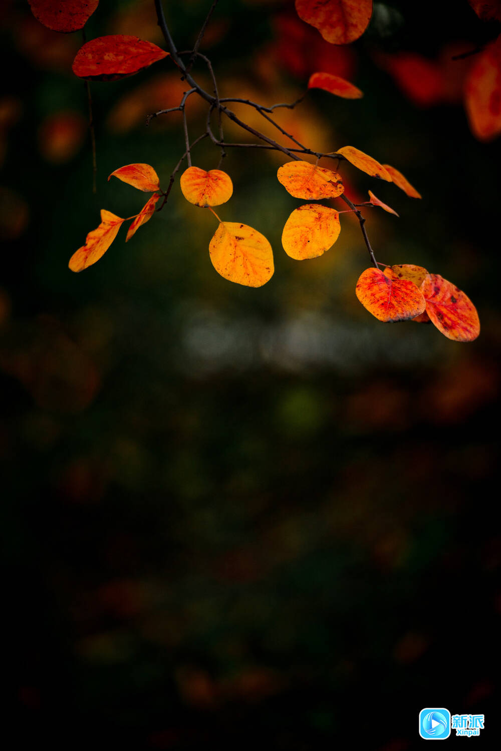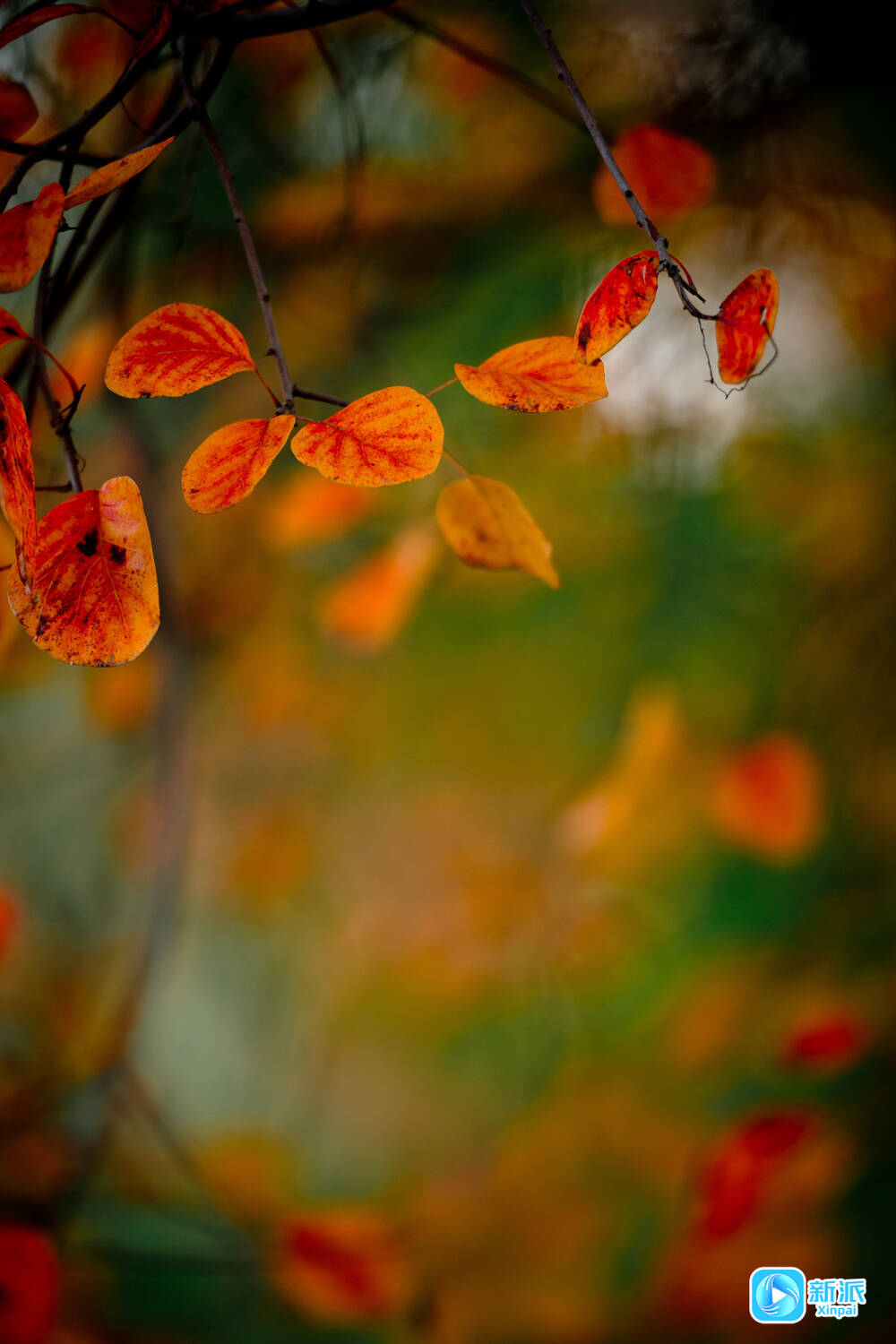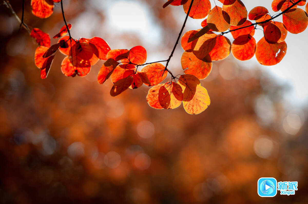 摄影爱好者支起三脚架,镜头里,一片鹅掌枫的叶子正飘落。河畔的游客三三两两,有人弯腰拾起一片完整的黄栌叶夹进书页。孩童举着糖葫芦追逐飘落的枫叶,笑声惊飞了枝头的麻雀。