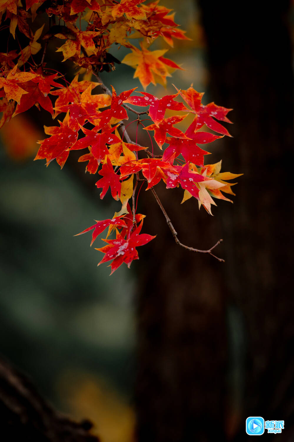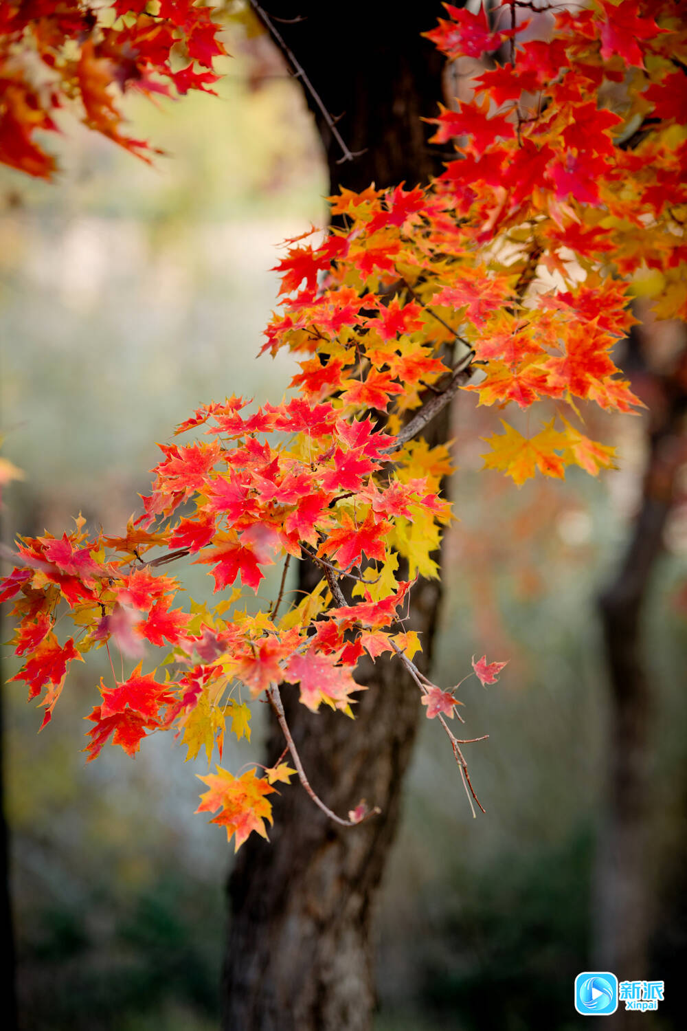 新派讯 11月7日,立冬时节,潍坊浞河两岸的秋色迎来一年中最绚烂的告别。黄栌的深红与鹅掌枫的金红交织成流动的画卷,在晨雾与暮色中演绎着季节的温柔更迭。