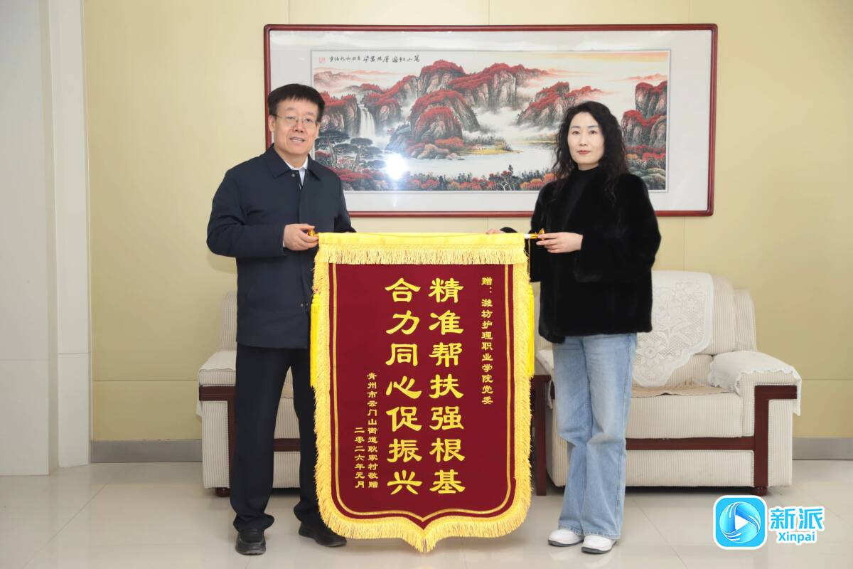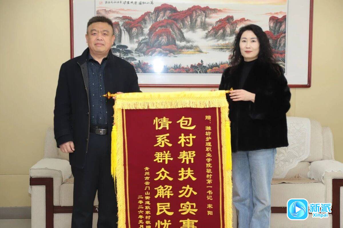 新派讯 “感谢学校党委对我们的帮扶和支持,也感谢宋阳书记在驻村期间所做的工作,让我们村发生了显著变化,进一步增强了村民幸福感。”近日,青州市云门山街道宋阁社区主任张钦志、耿家村“两委”干部与村民代表一行专程来到潍坊护理职业学院赠送锦旗,向学校表示诚挚感谢。