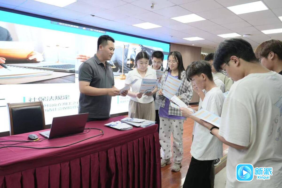 社保中心工作人员为高校学生讲解社保政策。