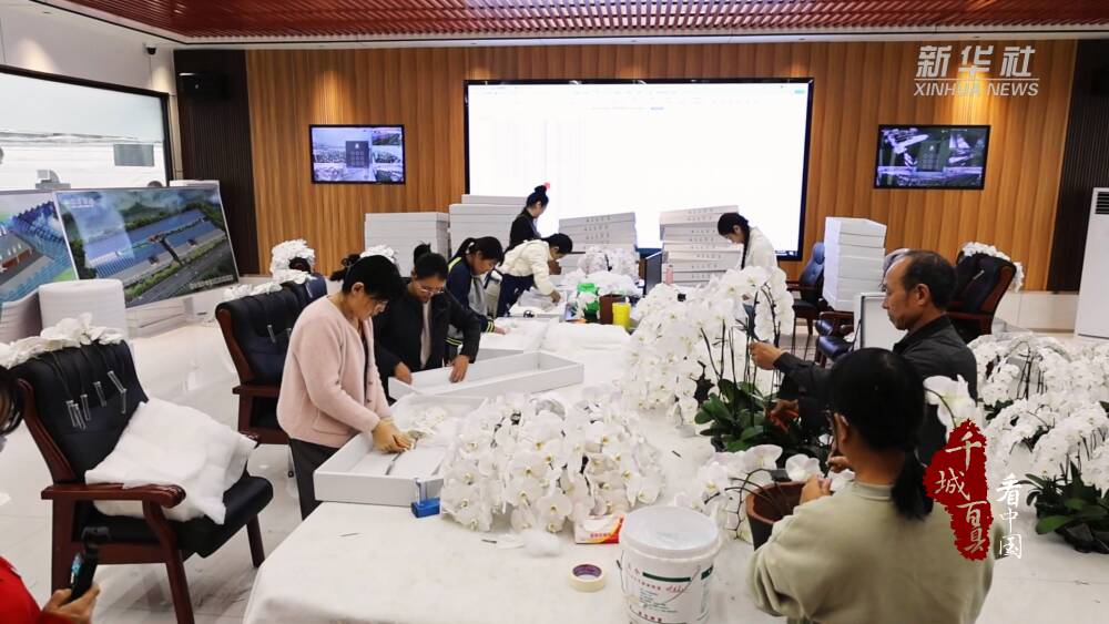 智能温室大棚内,柔光映照着层叠花瓣,暗香浮动,工人们正熟练地修剪、组合、包装。一株株形态各异的蝴蝶兰被精心搭配,化身为优雅花束或精美盆栽。不仅为佳节注入鲜活动力,也促进了当地“花经济”的发展。