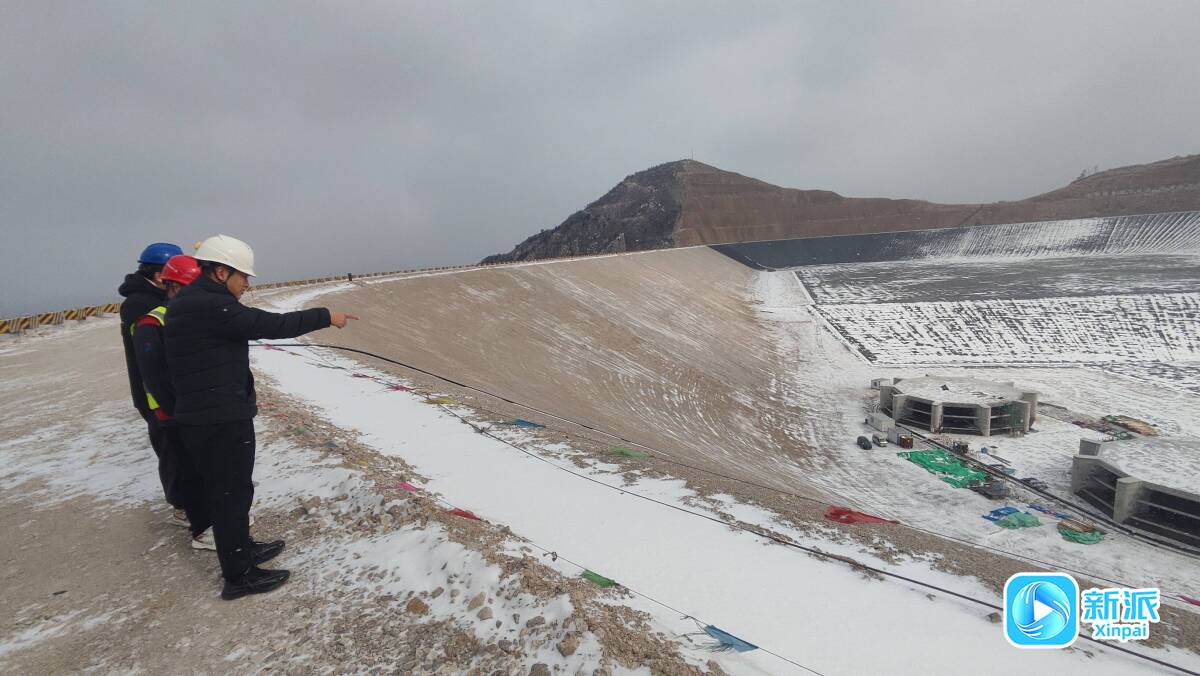 当越野车停稳在山顶水库工地上时,一个巨大的用混凝土浇筑的“蓄水池”出现在记者眼前,几名工作人员正冒着风雪沿水库大坝的边坡进行巡检。与往常机器轰鸣、车辆穿梭的热闹场景不同的是,因气温持续降低和春节假期临近,整个工地已经暂停了大型施工。