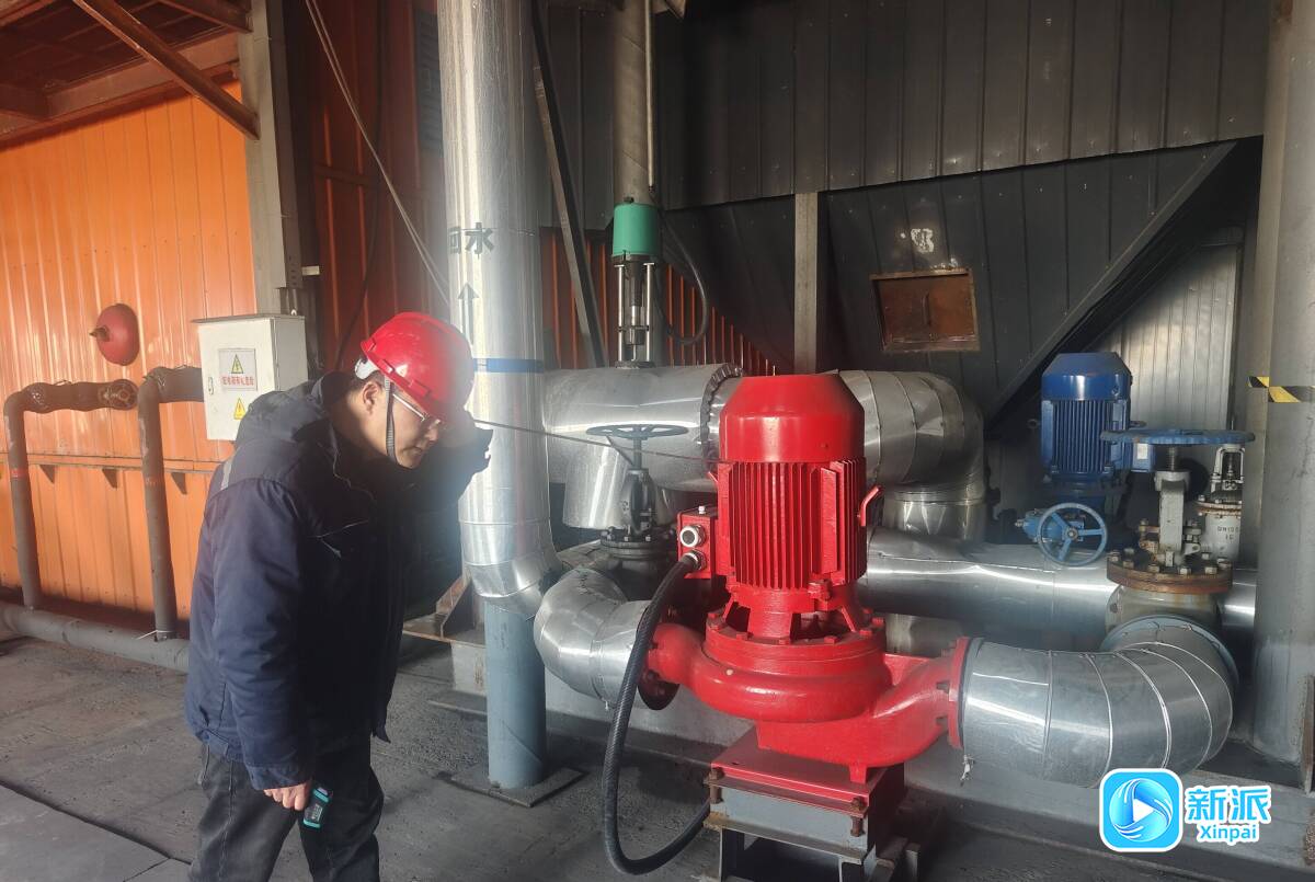 潍坊华潍热力有限公司热源厂工作人员对供热设备进行巡检。