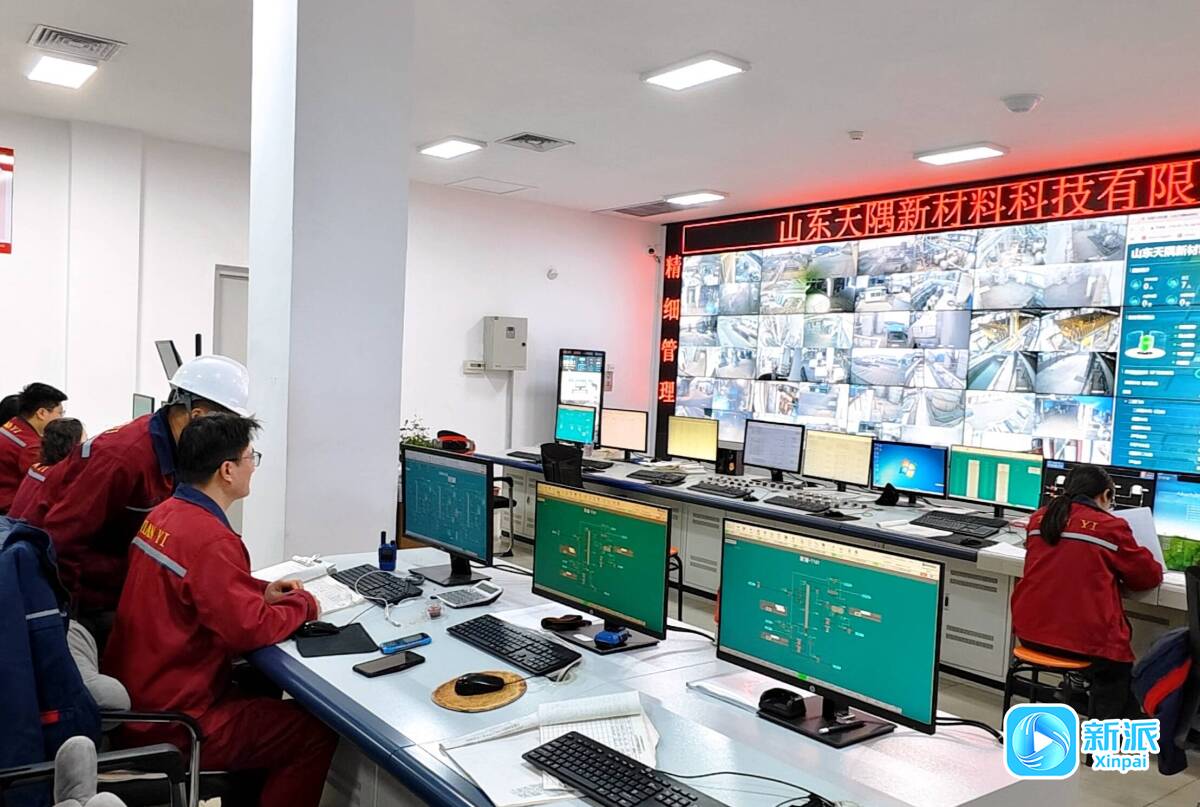 山东天隅新材料科技有限公司中控室,工作人员实时查看各项参数。