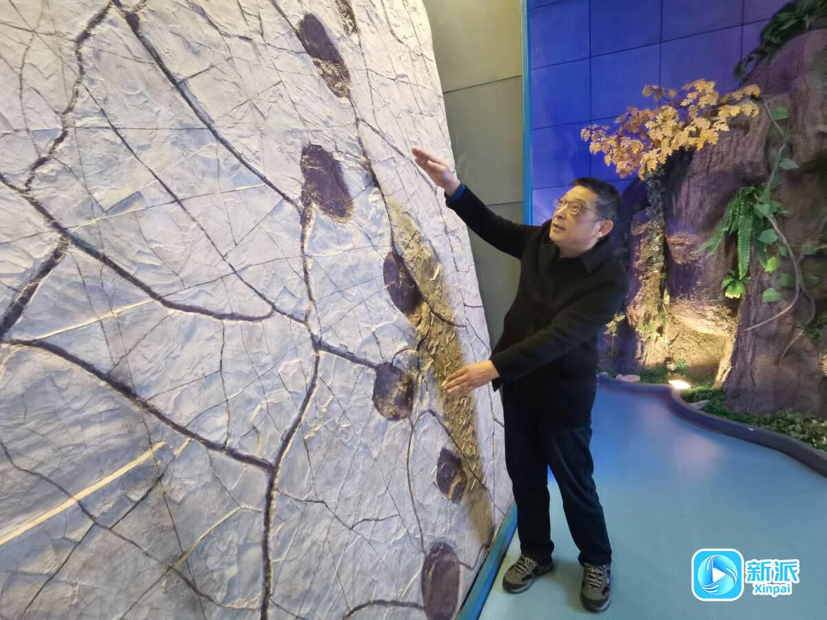 闫团祥介绍世界唯一恐龙180度拐弯足迹。