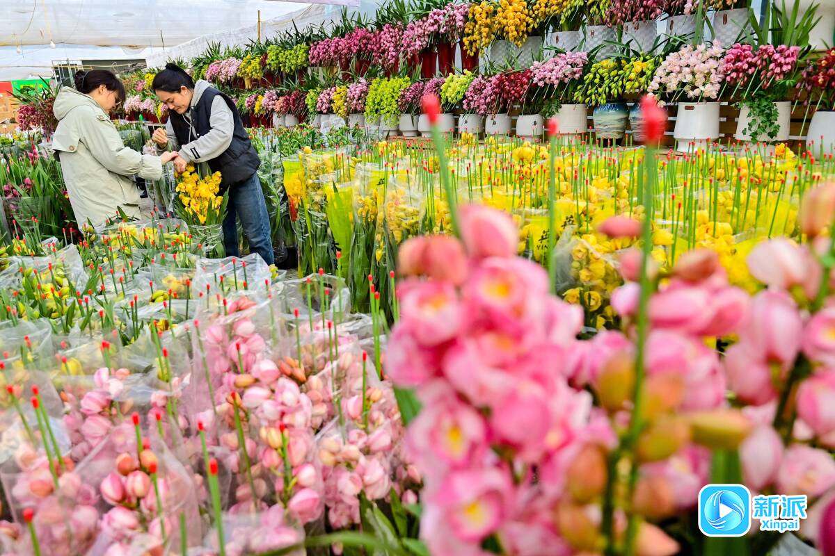 中国(青州)花卉苗木交易中心,一家商户正在对售出的花卉进行打包。(资料图片)