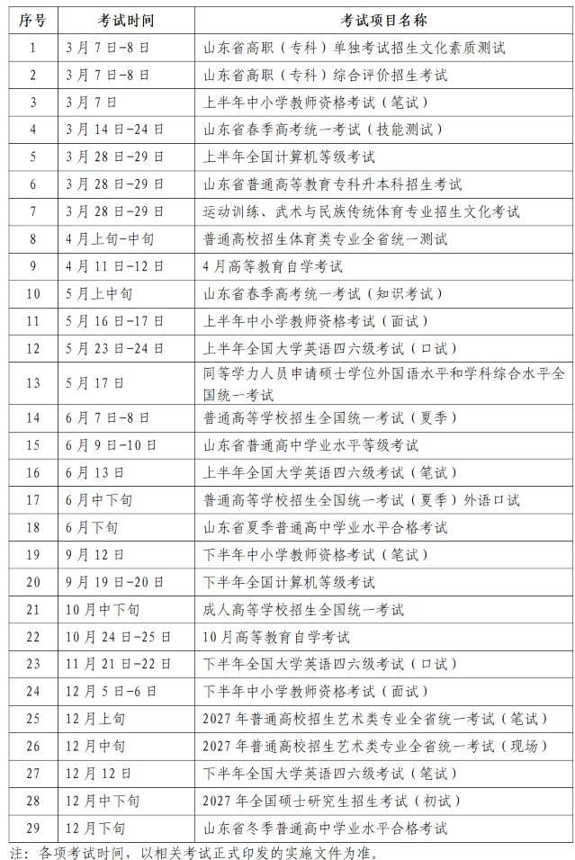 2月25日,山东省教育招生考试院发布2026年山东省教育考试时间安排。