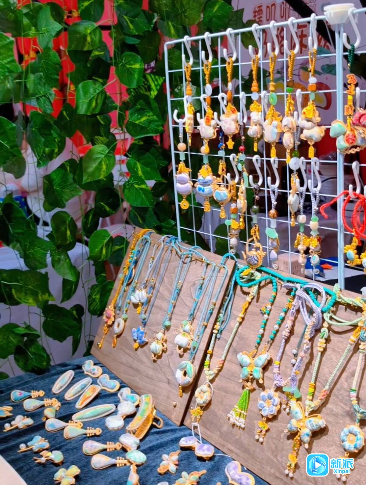 “这是一款香囊,里面可以根据自己的喜好放置不同味道的香料。”“这块布料选的是‘春日宴’,上面有郁金香、小兔子等美好可爱的动植物,特别有春日氛围感。”展位前,赵小墨正为顾客一一介绍这些“宝贝”:可旋转的小葫芦、憨态可掬的招财猫、灵动的蝴蝶,每一枚小小的饰品都透着暗藏的巧思。而银杏叶造型的耳饰、琵琶造型的簪子则引来不少国风爱好者当场试戴。