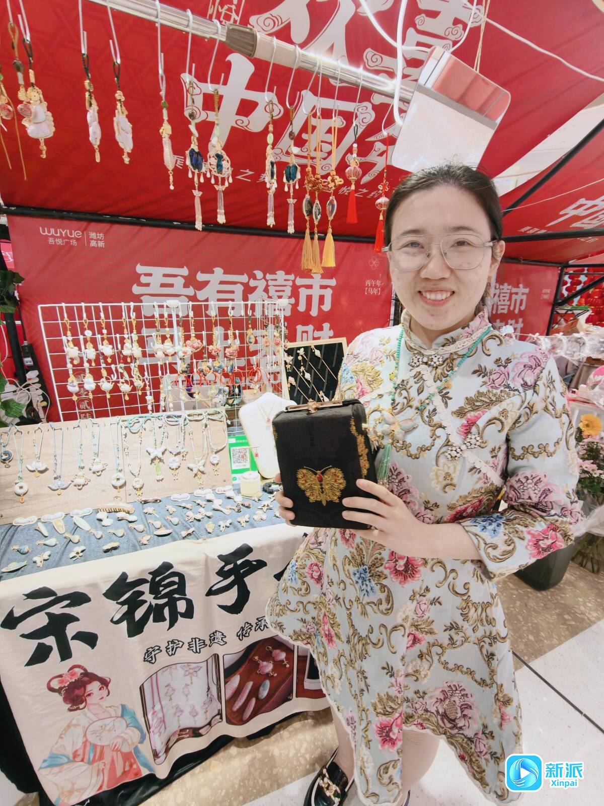 新派讯 春节期间,潍坊泰华新天地“年轮好市”和吾悦广场“吾有禧市”的人流中,“90后”潍坊姑娘赵小墨的宋锦挂饰格外引入注目,那些流淌着千年光阴的织锦,正化作眼前的挂饰、胸针、耳饰等,以全新的姿态装点着现代人的新春。