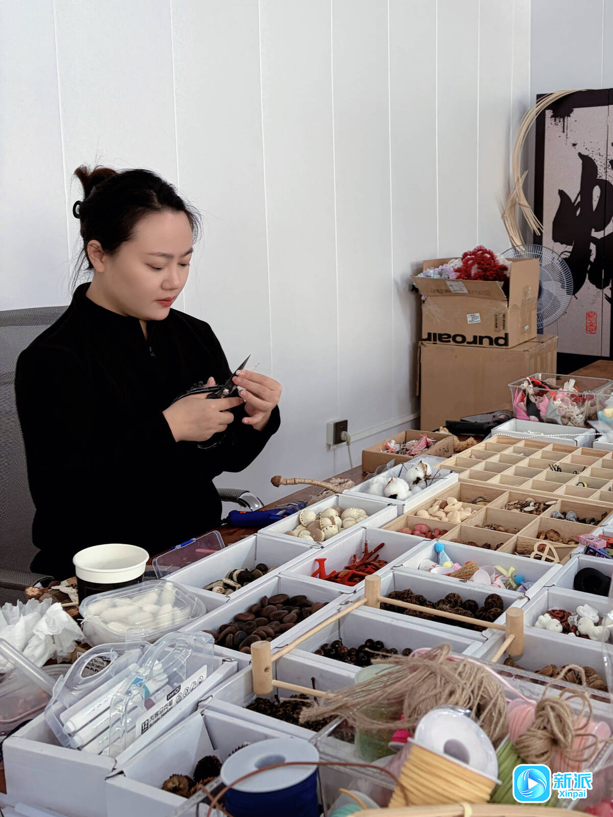 今年春节期间,邵玺瑾带着她的“娃娃大军”参加了十笏园的“万笏新叙·新春妙会”市集。常有年轻人和小朋友在她的摊位前驻足,一待就是半小时。还有人上前询问是否招聘,想跟着她学做果壳娃娃。邵玺瑾从当地街道招聘了几名年轻姑娘,以“玩”的心态共同创作,“就是觉得每天来做手工能收获很多快乐。”邵玺瑾说。