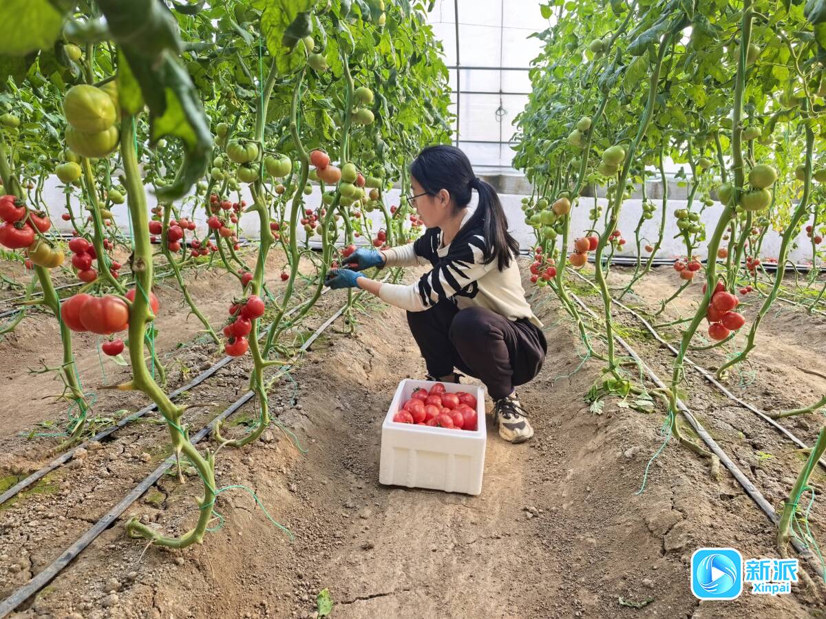 新派讯 红彤彤的番茄成串挂在枝蔓上,绿宝石般的番茄硕果累累,一个个青肩草莓西红柿错落有致……在寿光,这幅喜人的丰收场景出现在同一个蔬菜大棚里。2月27日,在山东鲁盛农业集团有限公司(以下简称鲁盛农业)农业研发中心的番茄大棚里,扎根田间从事番茄育种工作的新农人张卫正满怀喜悦地采摘成熟的鲜食番茄。