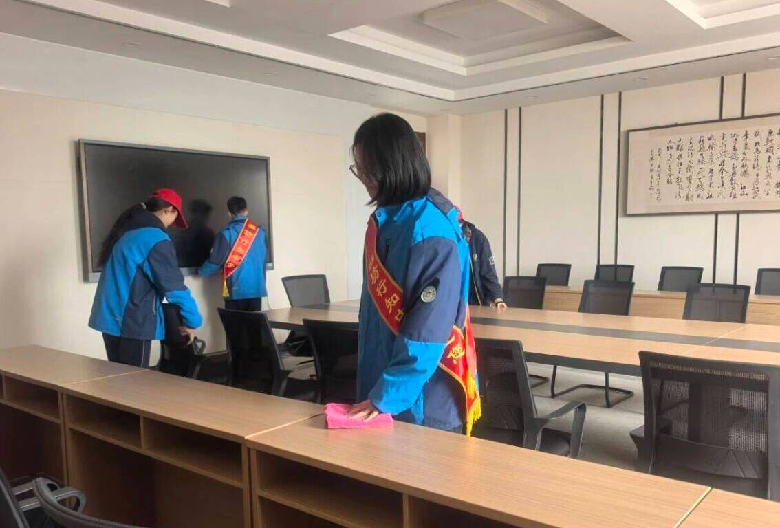 3月4日下午,校园学雷锋活动热潮迭起。“校园先锋”志愿者利用课间时间,积极投身校园环境卫生整治。同学们分工明确、响应迅速,主动配合物业阿姨开展清扫、整理和杂物清理工作。师生并肩、家校联动,充分展现了行知学子知行合一、乐于奉献的精神风貌,在校园内部形成了争先创优、热爱劳动的良好风尚。