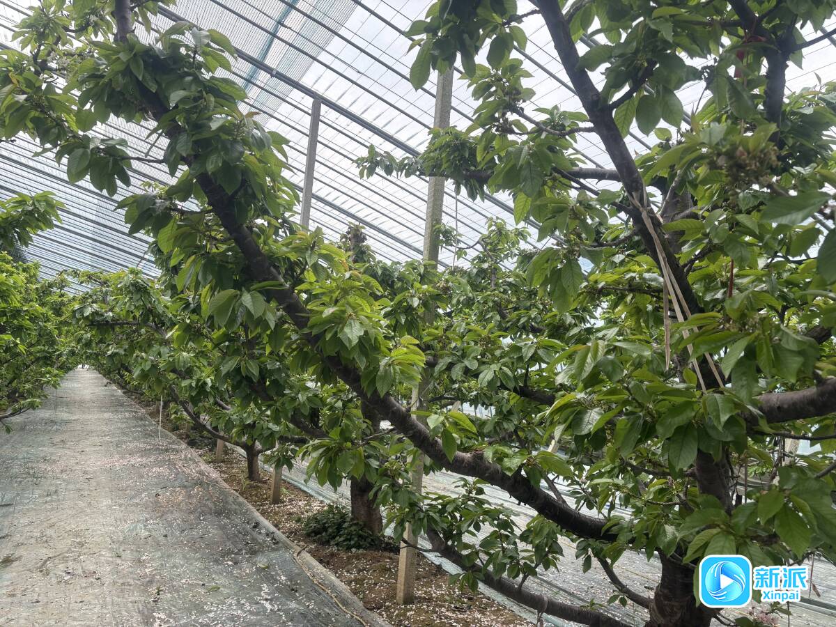 大棚内的樱桃树生机盎然。