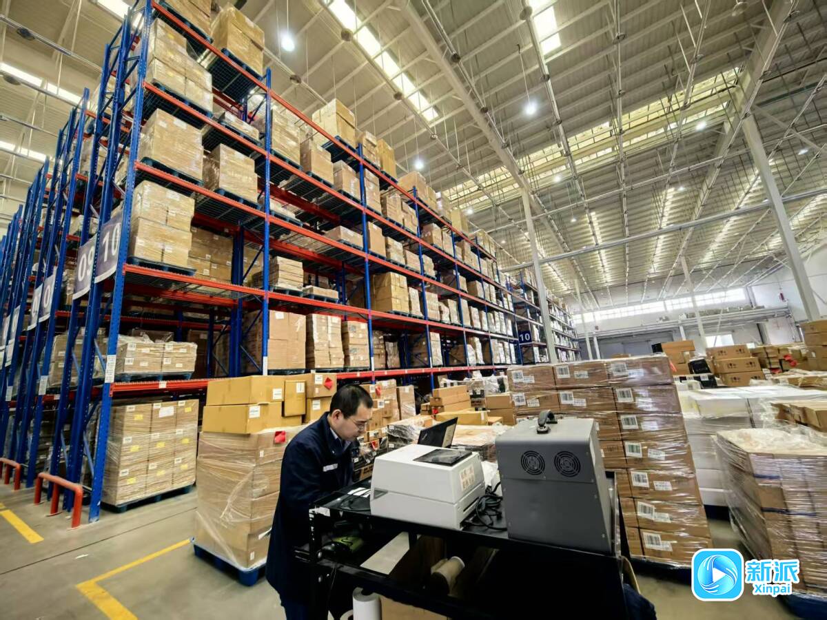 潍坊海关工作人员对跨境电商商品进行监管。