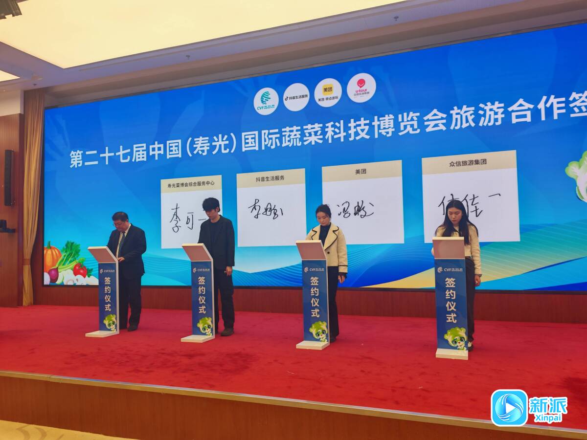 寿光菜博会综合服务中心与抖音、美团及众信旅游集团签署合作协议。