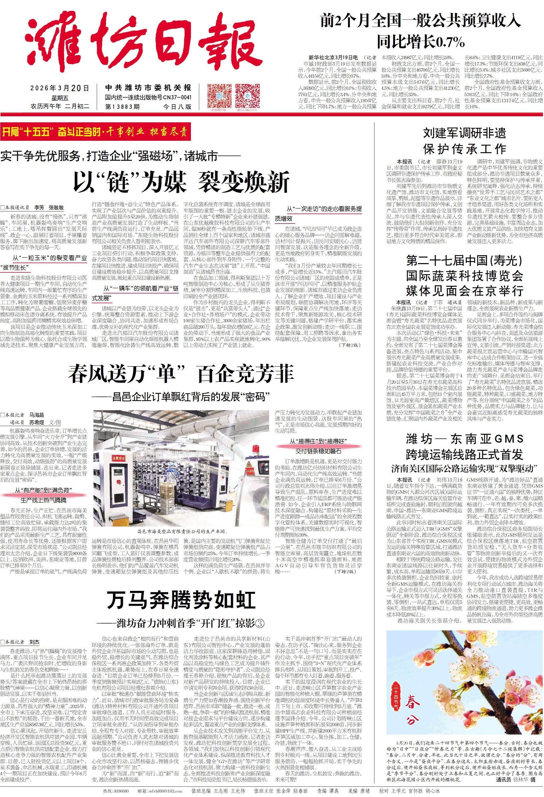 是什么托举起潍坊蒸蒸日上的发展势头?答案就藏在全市上下始终昂扬的那股精气神里——以信心凝聚力量、以创新驱动发展、以实干彰显担当。