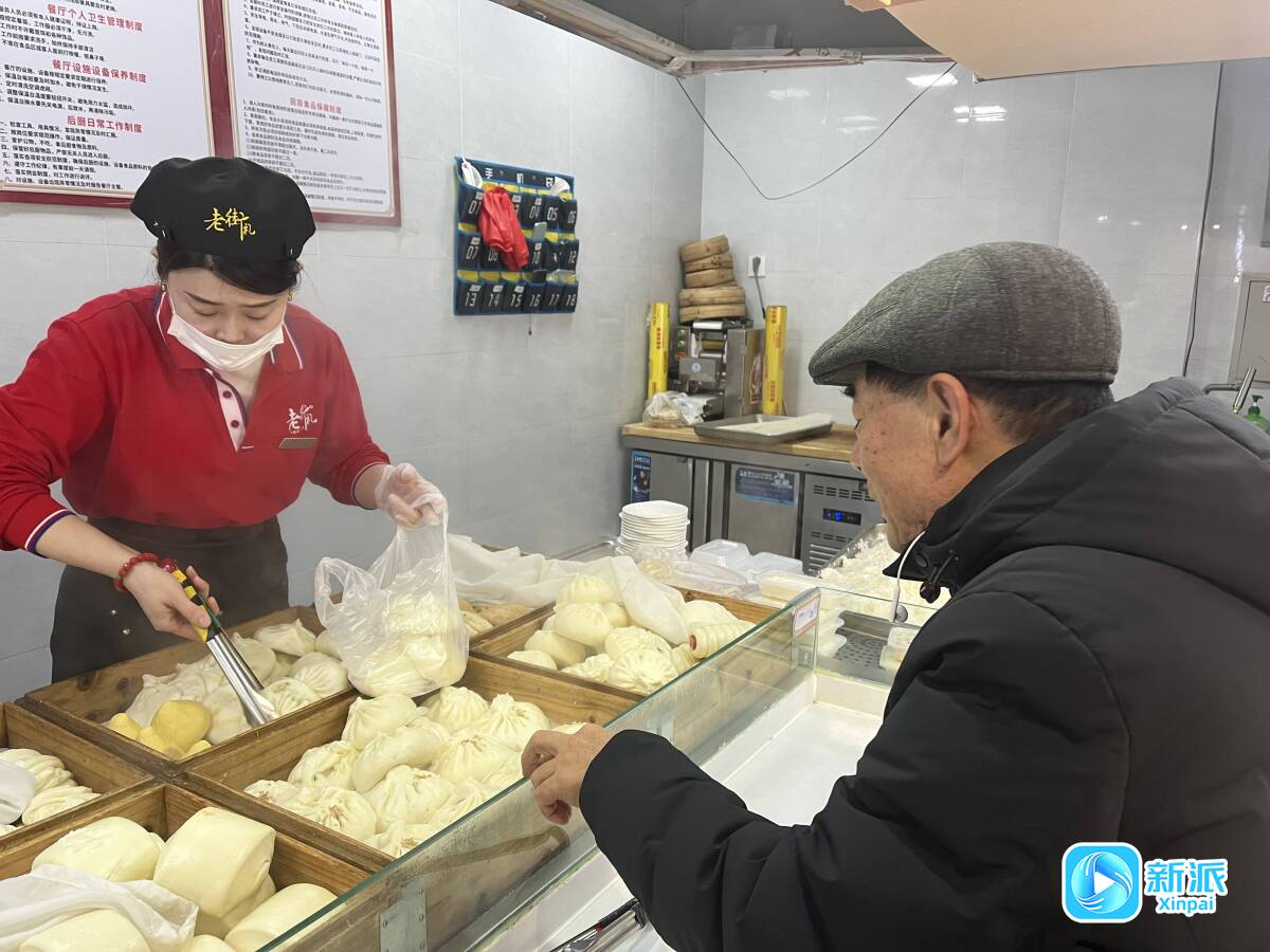 老人到东金蔴老街礼快餐厅买包子。
