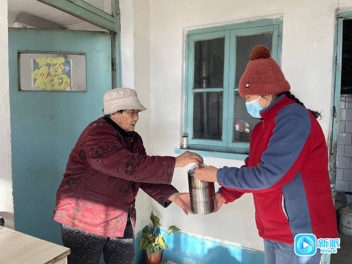 北王社区乐龄食堂的志愿者(右)上门为老人送餐。