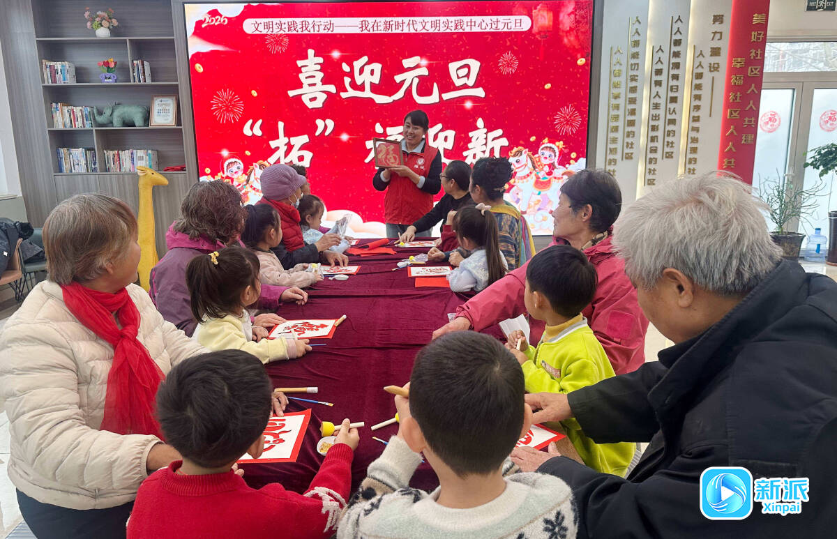 在潍城区城关街道增福堂社区,居民们参加元旦主题手工制作活动。