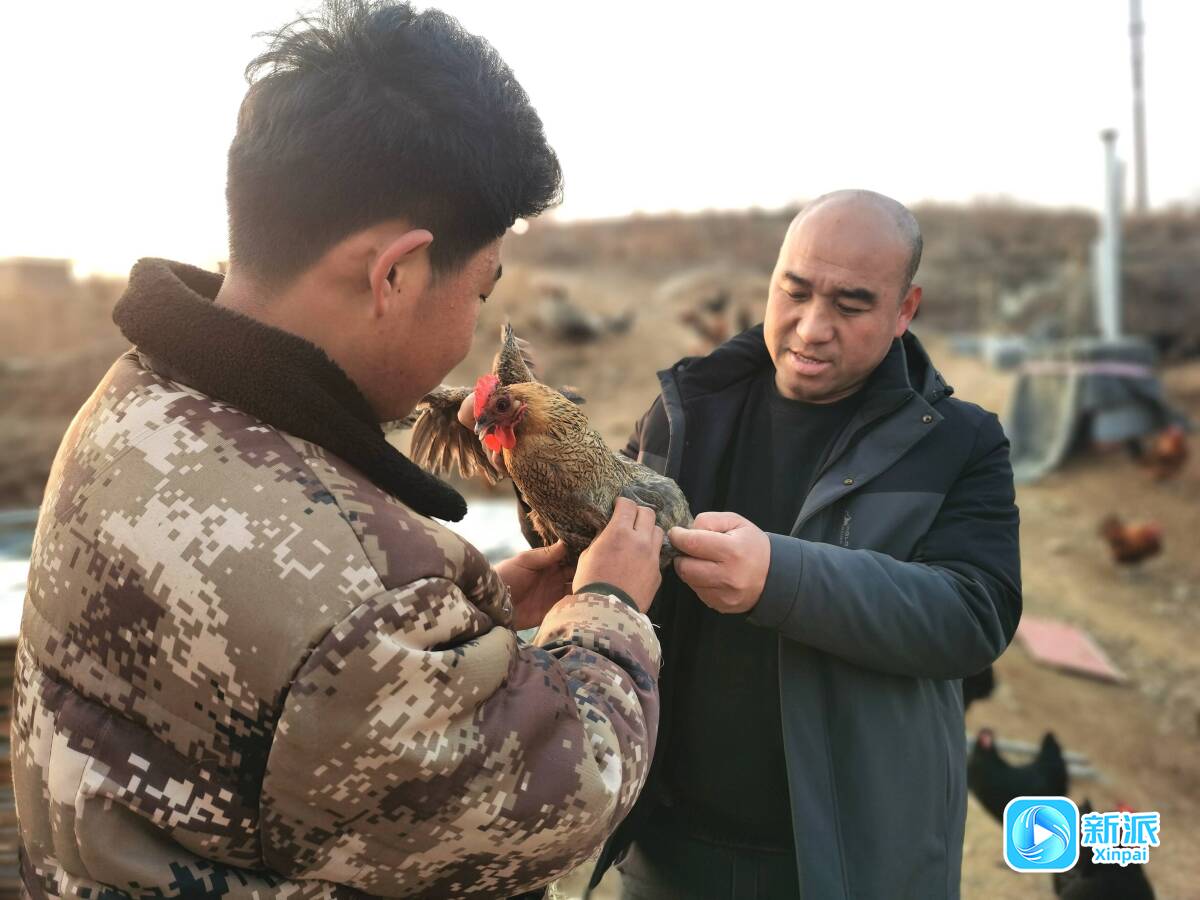 王勤生(右)养的跑山鸡,个头不大但肉质紧实。