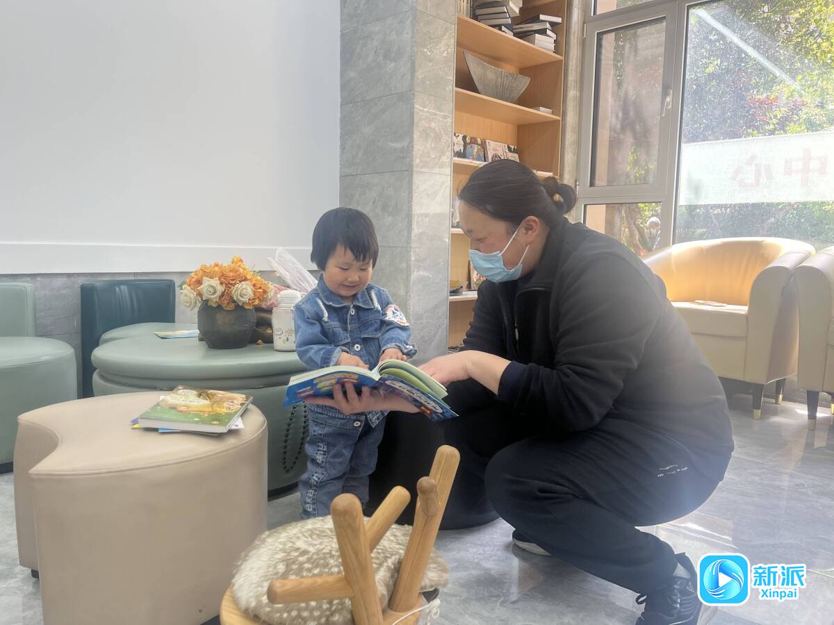 在妇女儿童家园里,家长陪孩子看书。