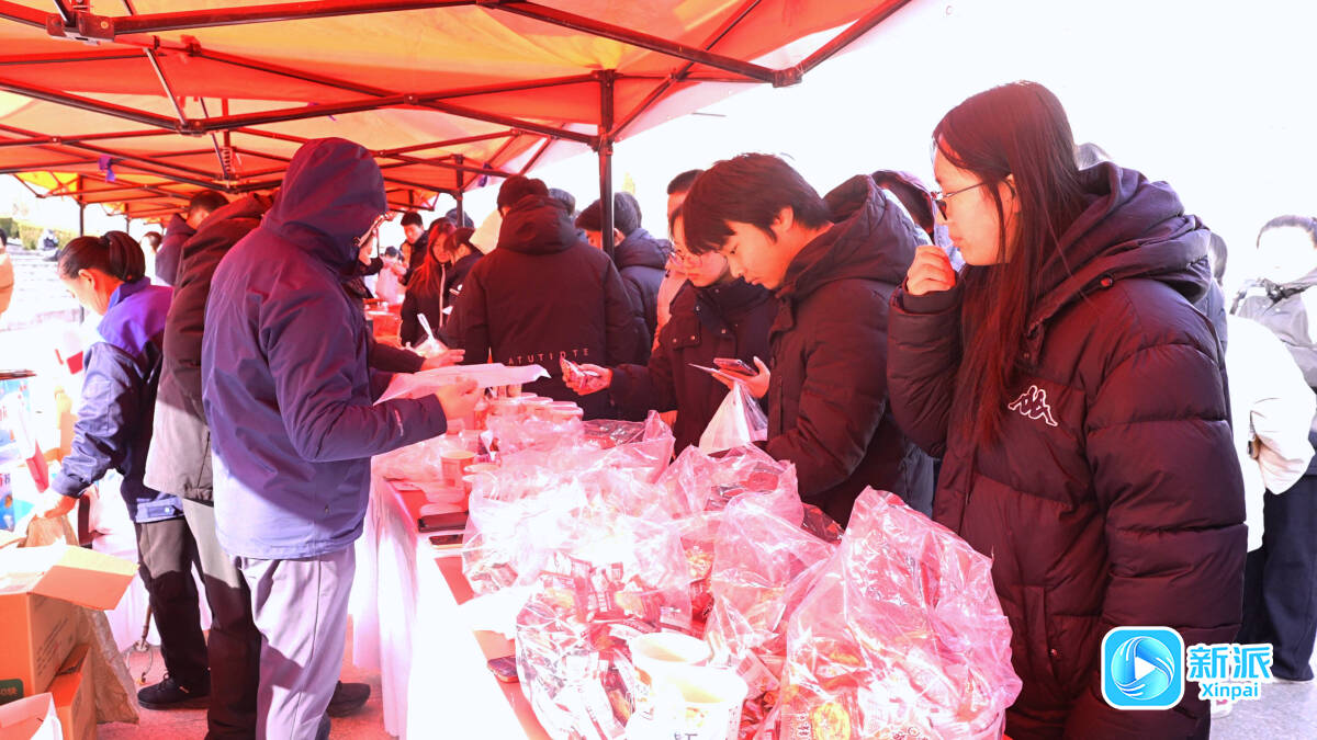 红灯笼挂起新春的讯号,展位前挤满年轻的身影。30余家参展企业携300余种优质产品重磅集结,琳琅满目的好物让校园变身热闹的“年味驿站”:潍县萝卜脆嫩多汁,一口咬下便是满满的清甜;杨家埠木版年画色彩浓艳,一笔一画都凝结着老匠人的心血;以潍坊风筝、十笏园为灵感的钥匙扣、笔记本创意十足,成为年轻人追捧的“文化潮物”;中华老字号的百年酱菜、手工糕点,每一件产品都承载着潍坊的地域记忆与匠心温度。
