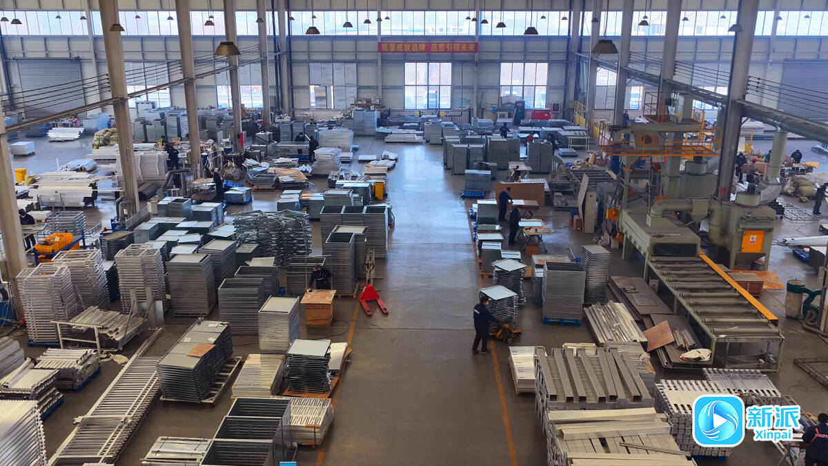 新派讯 1月15日,在位于潍坊临朐东城街道东铝铝业科技(潍坊)有限公司的生产车间内,机械臂精准舞动,工人们娴熟地完成切割、打磨、组装等工序,打包好的产品整齐码放,即将装上集装箱发往海外,一派热火朝天的繁忙景象。来自法国和澳大利亚的客商循着生产线缓步察看,不时驻足端详产品细节,与企业负责人热切交流,眼神里满是认可与赞许。