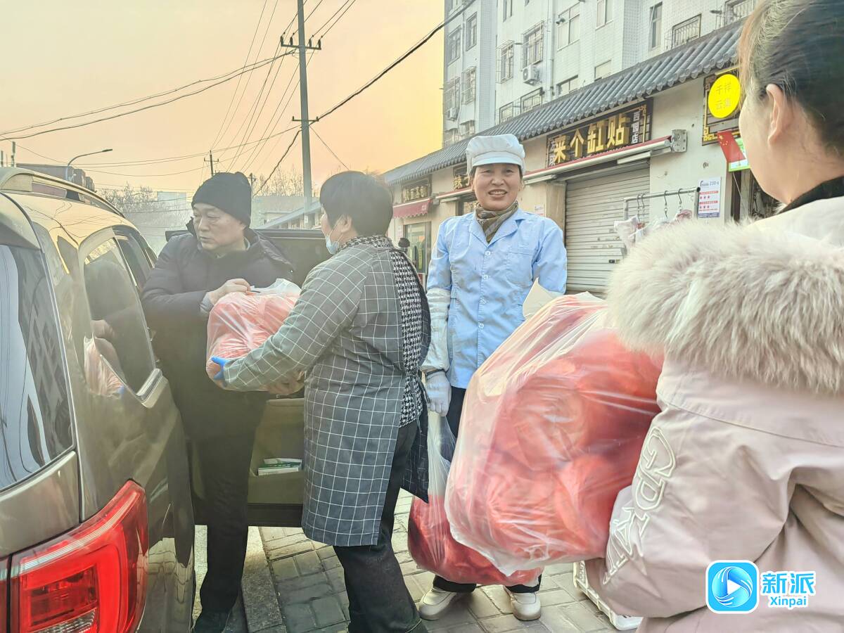 说话间,魏先生驾车如期而至,2800个火烧已打包好,周围的商户纷纷来帮忙,大家接力把2800个火烧装到魏先生的车上。为了感谢魏先生的支持,细心的张永琴还专门送了他两个糖酥火烧礼盒,祝福他女儿新婚快乐。