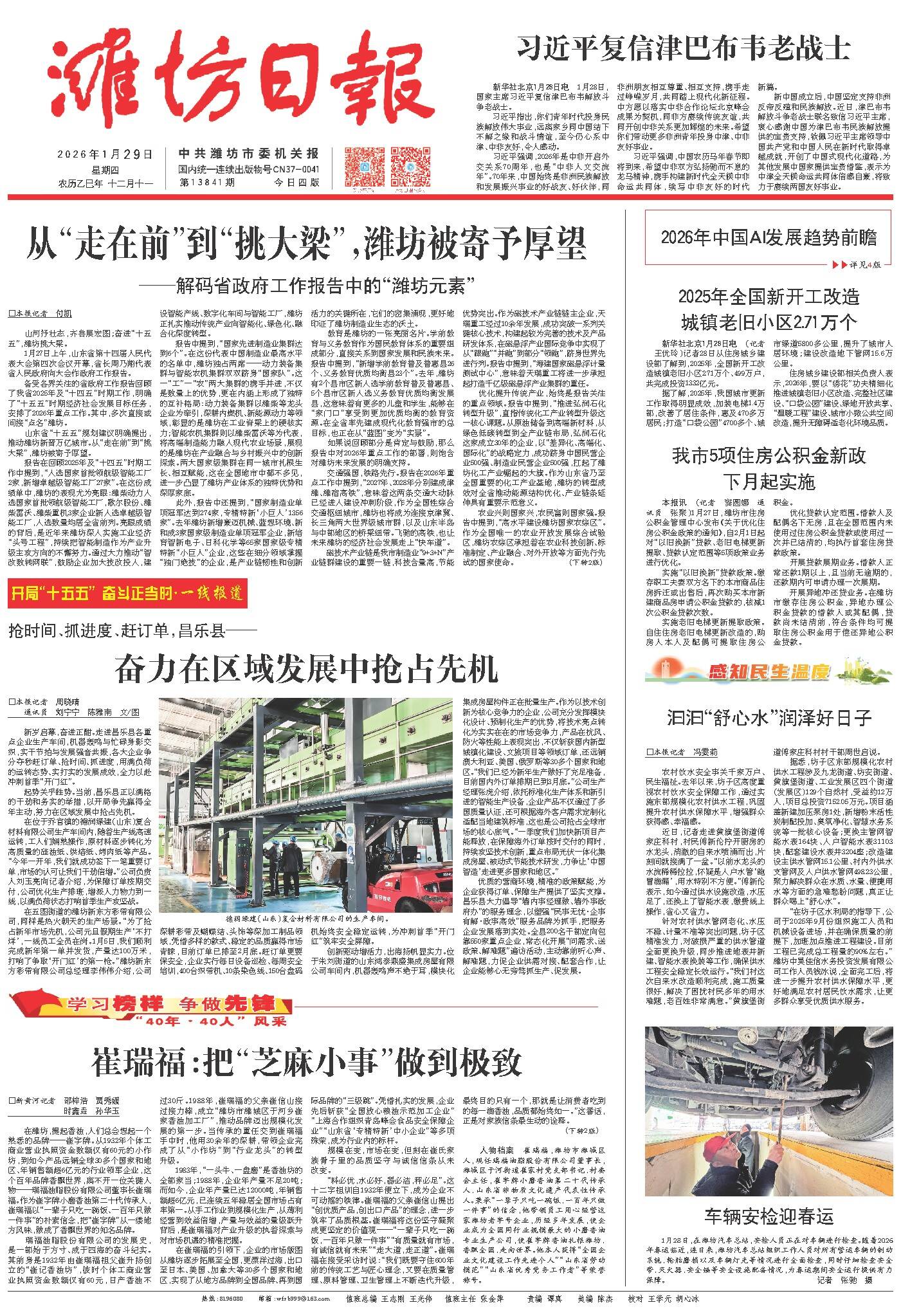 编者按 我市前期评选出的“40年·40人”杰出人物,涵盖经济社会发展的各领域各行业,是潍坊人民团结奋斗、实干担当的杰出代表。在冲刺收官“十四五”、谋篇布局“十五五”的关键节点,为全力营造学先模、鼓干劲的浓厚社会氛围,汇聚“走在前、挑大梁”的磅礴力量,鼓舞全市上下坚持以新发展理念为引领,砥砺奋进、攻坚克难,为加快建设更好潍坊书写精彩答卷,开设“学习榜样 争做先锋 ‘40年·40人’风采”栏目。
