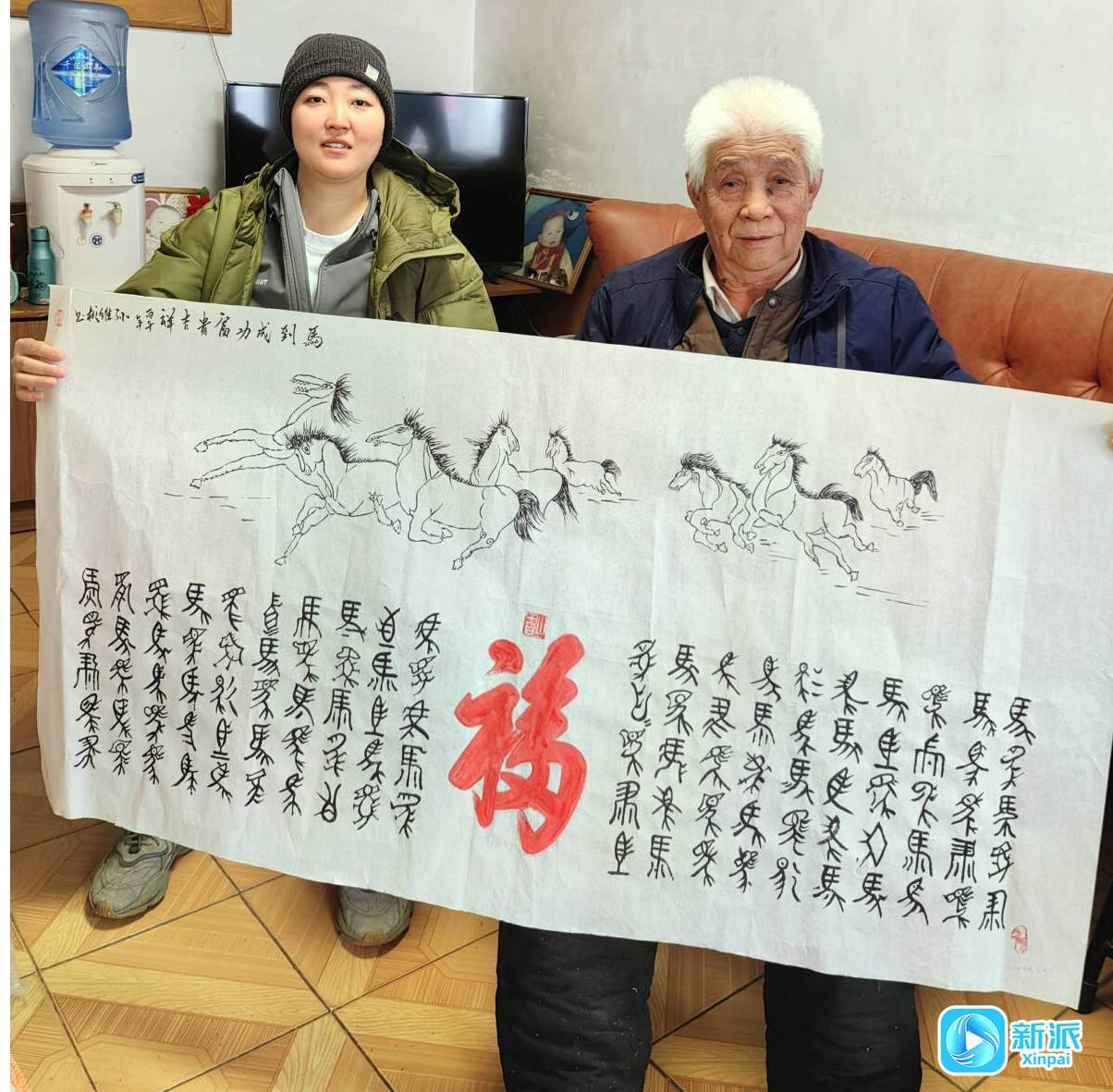 “每个‘福’字都是老人用传统篆书一笔一画写出来的,过年时将《马到福来》挂在客厅或书房里,特别有文化气息,把好运、健康、财运全都请进门。”孙维彬的一位邻居收到作品后异常开心,连声道谢。