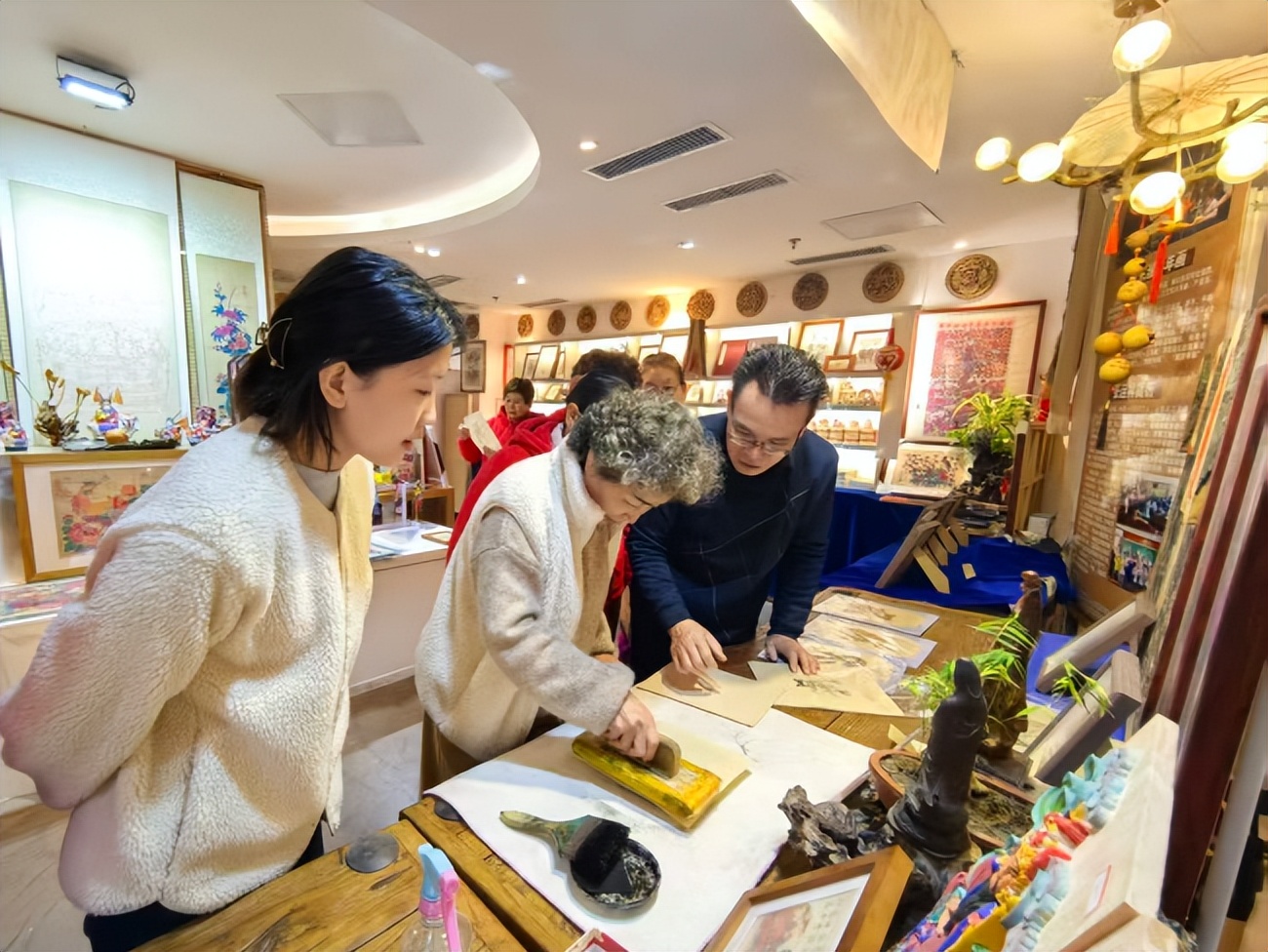 “最近我正联合社区,着手创作‘曹家巷十二景’板画。”在位于十笏园非遗空间的工作室内,基层文化建设指导员、潍坊木版年画领军人物张运祥正潜心创作新的木版年画。指尖起落间,老潍县的烟火景致跃然纸上。下沉曹家巷社区数月,张运祥每周到社区的“巷往工坊”指导居民体验板画技艺,讲解其背后的文化底蕴;还邀请社区居民到工作室“沉浸式”感受木版年画从勾线、刻板到印刷的制作流程,拉近老百姓与老手艺之间的距离。