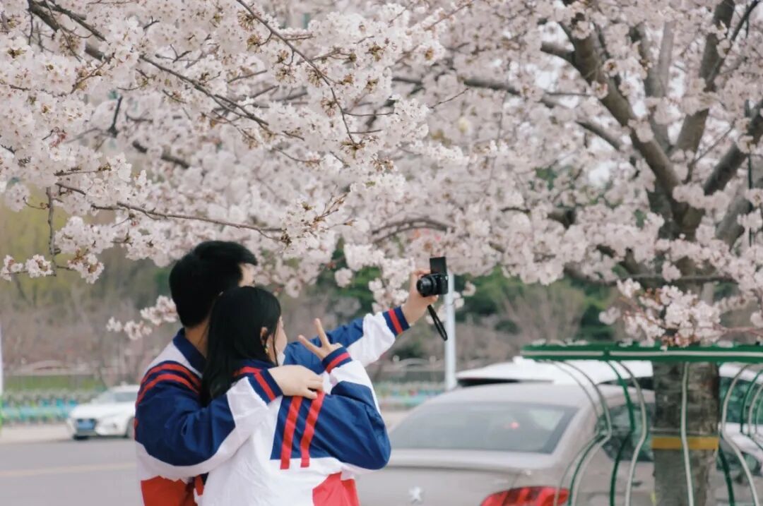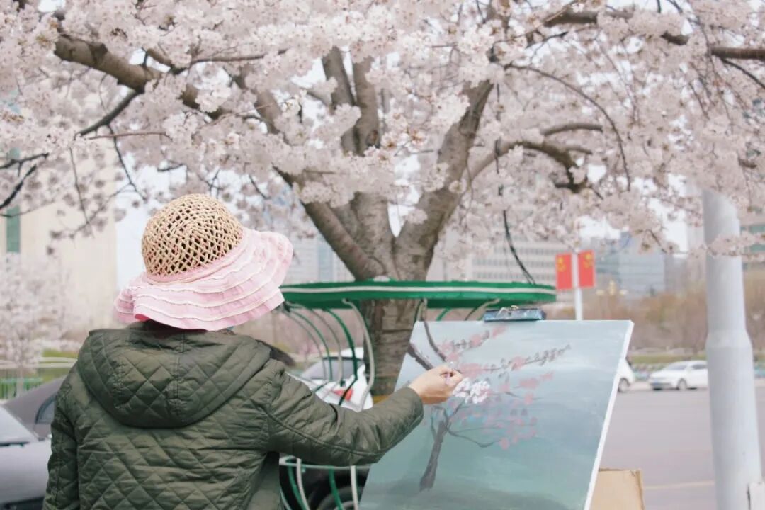 提到春日赏花,潍坊人民广场的樱花是市民心中跃动的第一抹春色。樱花盛开时节,树下人流如织,年轻人举着相机定格落樱瞬间,孩童在花雨中嬉戏,汉服爱好者衣袂飘飘,与樱花共绘流动的画卷。