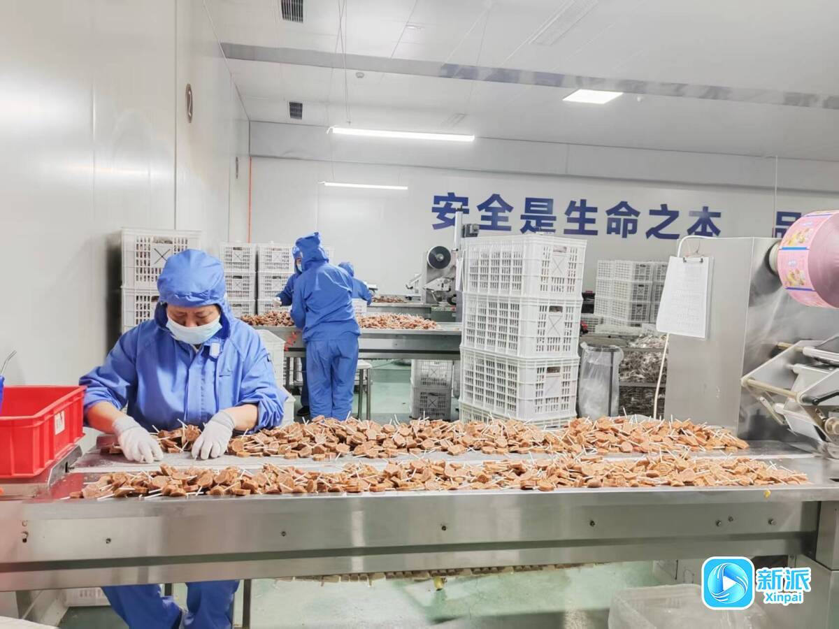 山东晶冠食品有限公司的生产流水线上,工作人员正在分拣产品。