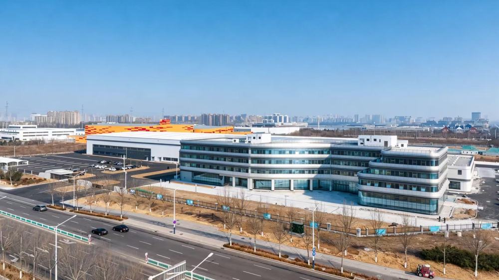 4月3日,在位于潍坊高新区的山东宝通新能源科技有限公司绿色低碳智慧装备项目现场,两栋厂房和一栋服务中心主体已竣工,工人们正紧锣密鼓地安装调试智能测试平台及环保设备。