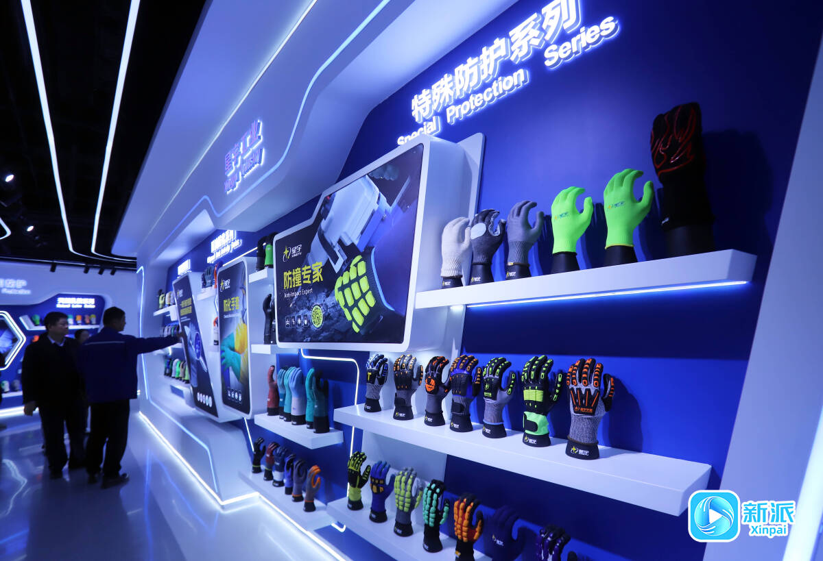 同样在技术创新上不遗余力的,还有山东登升安防科技有限公司,公司展台以太空宇航火箭造型呈现,彰显了科技创新风范。北极狐系列耐寒达零下40摄氏度,软铠甲防切割手套远超“欧标5级”……硬核产品矩阵,让观众不仅能亲手测试产品性能,还可通过视频走进“登升AI智造工厂”,见证智能化生产过程。