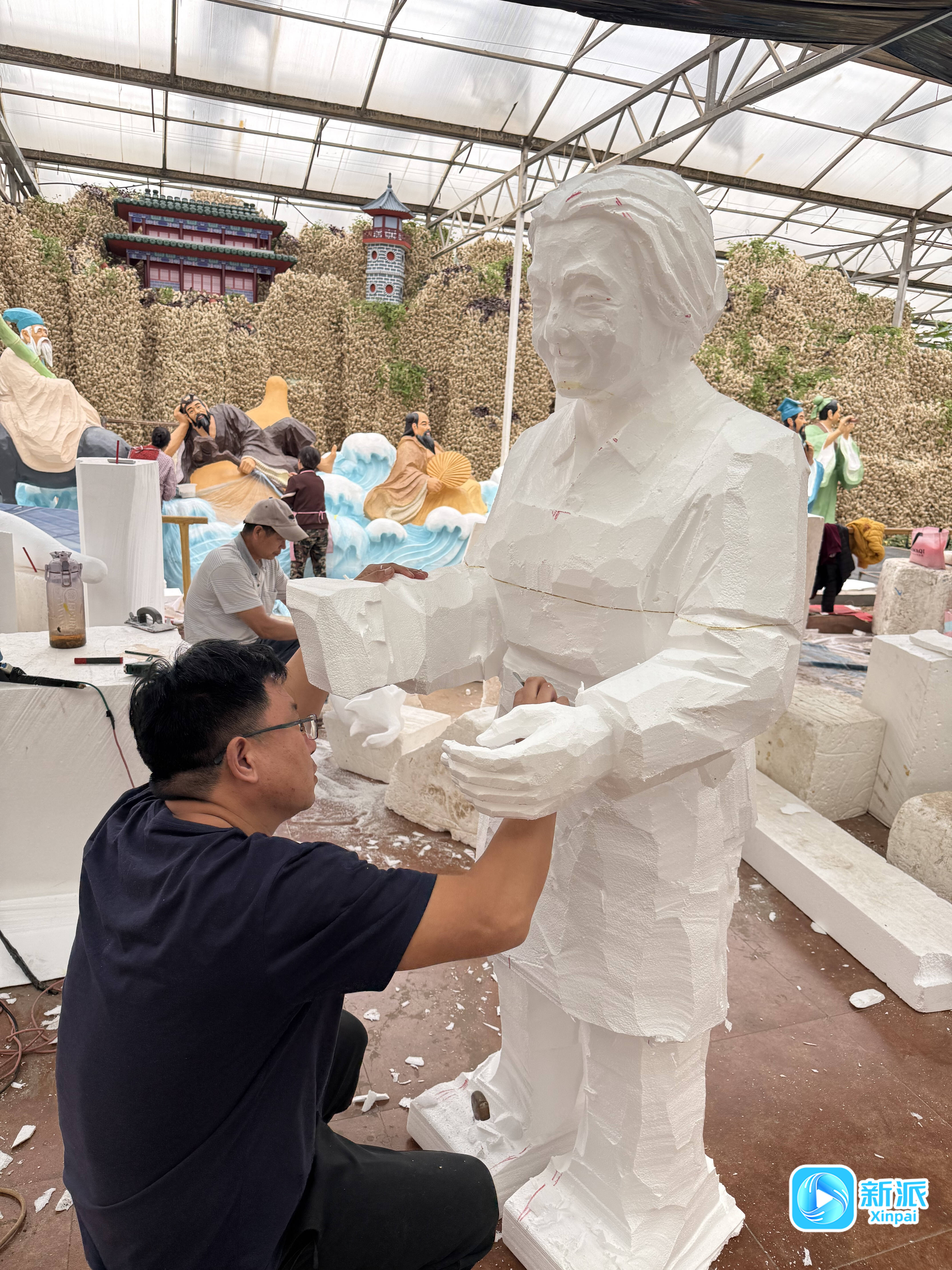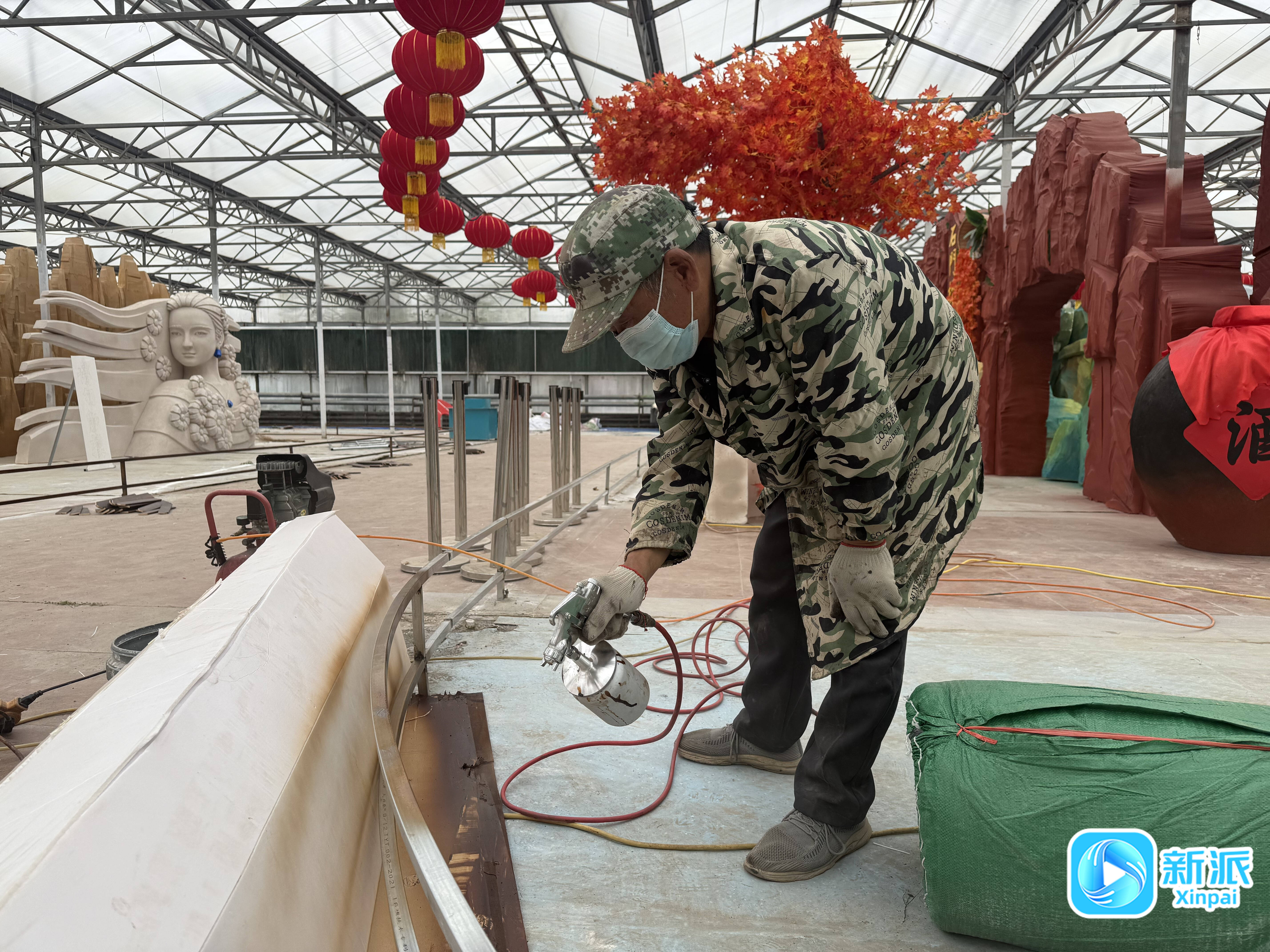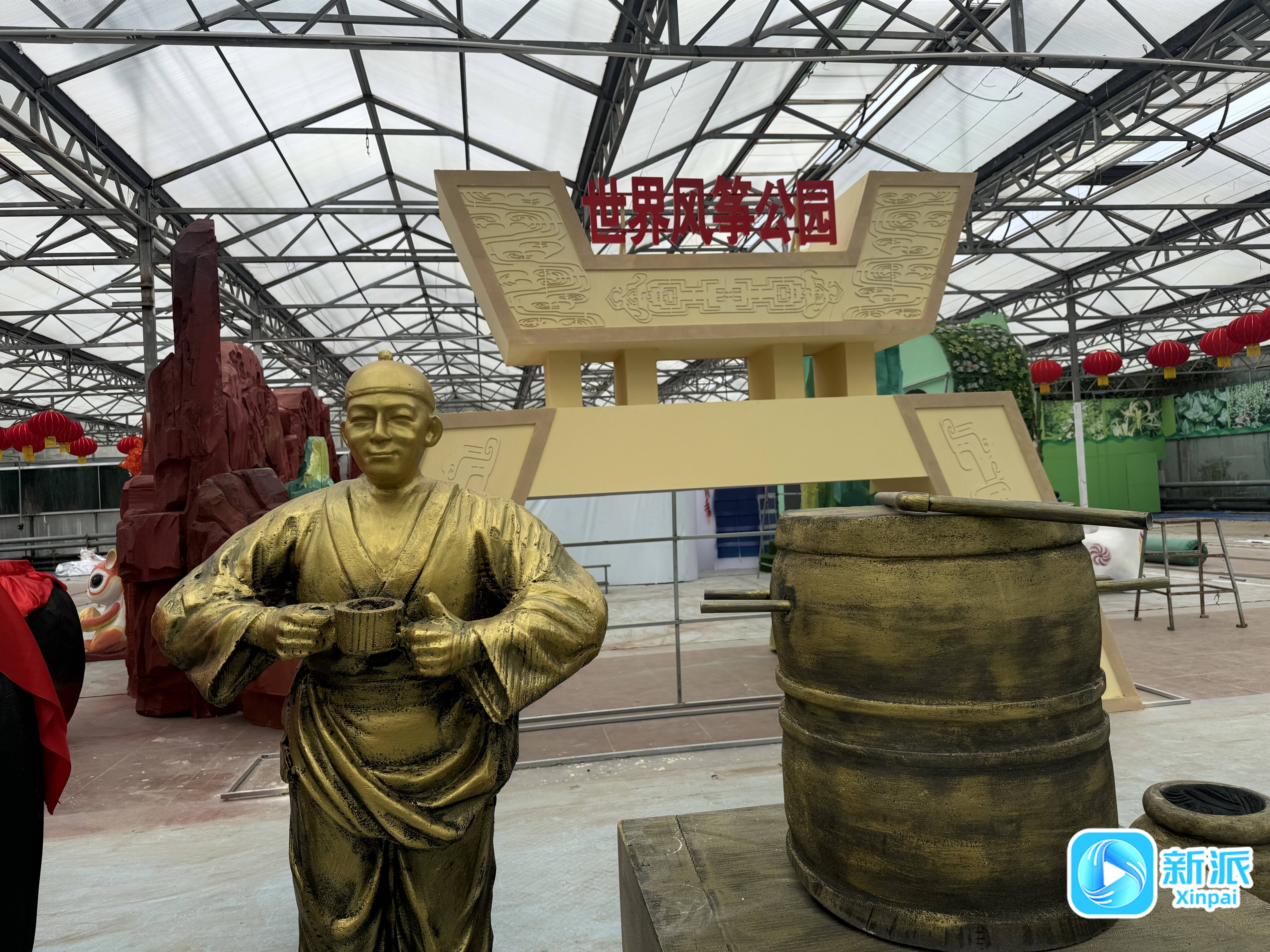 记者来到6号馆,只见潍坊各县市区的文化元素被展现得淋漓尽致:峡山獬豸威风凛凛、石门坊红叶缤纷摇曳,昌乐蓝宝石在少女的颈间与耳畔熠熠闪光……虽然还未完工,但景观的精美程度可见一斑,集中展示了潍坊各县市区特色文化与风土人情,令人耳目一新,过目不忘。