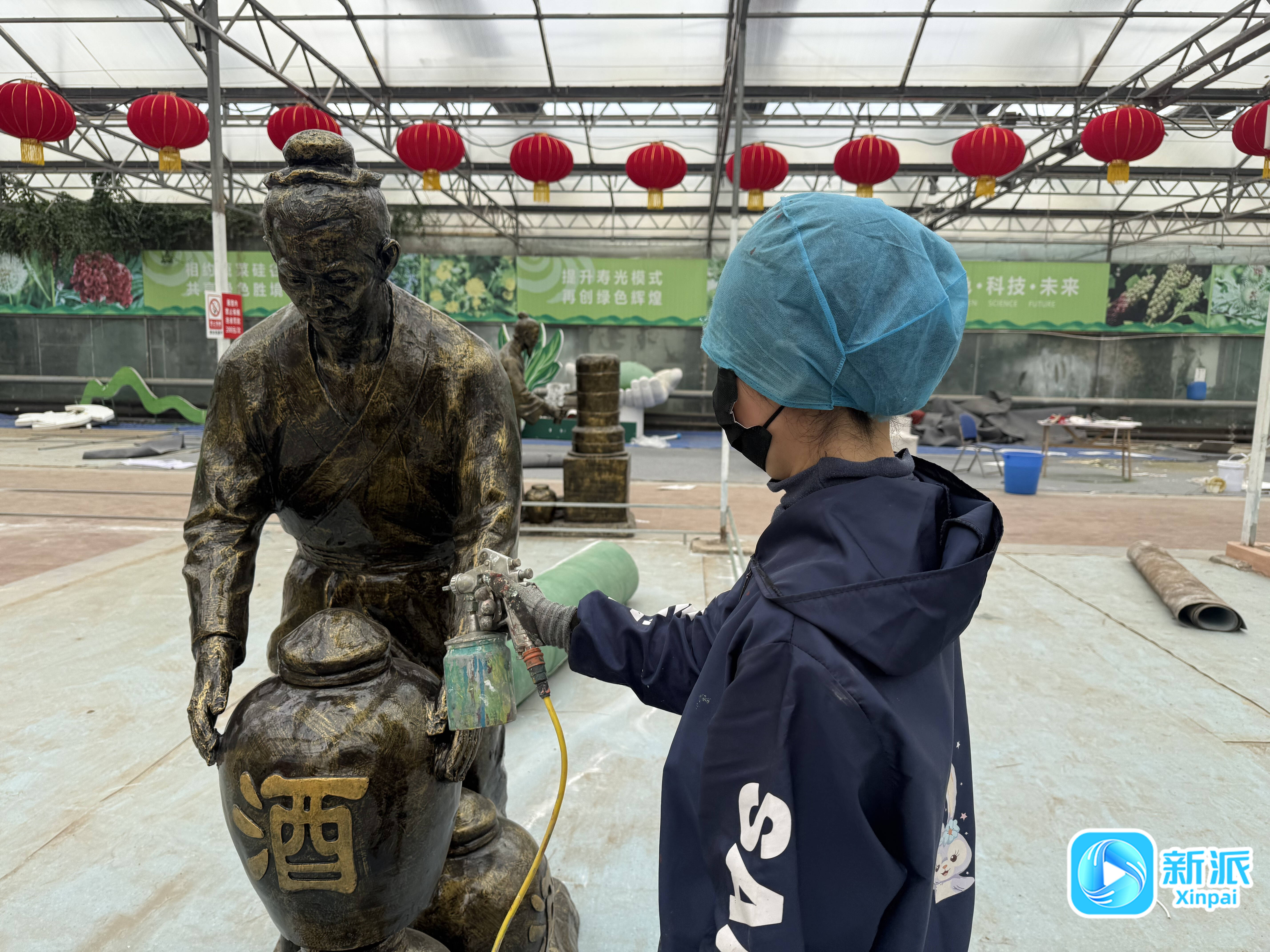 工作人员正在紧锣密鼓地进行景观装饰。