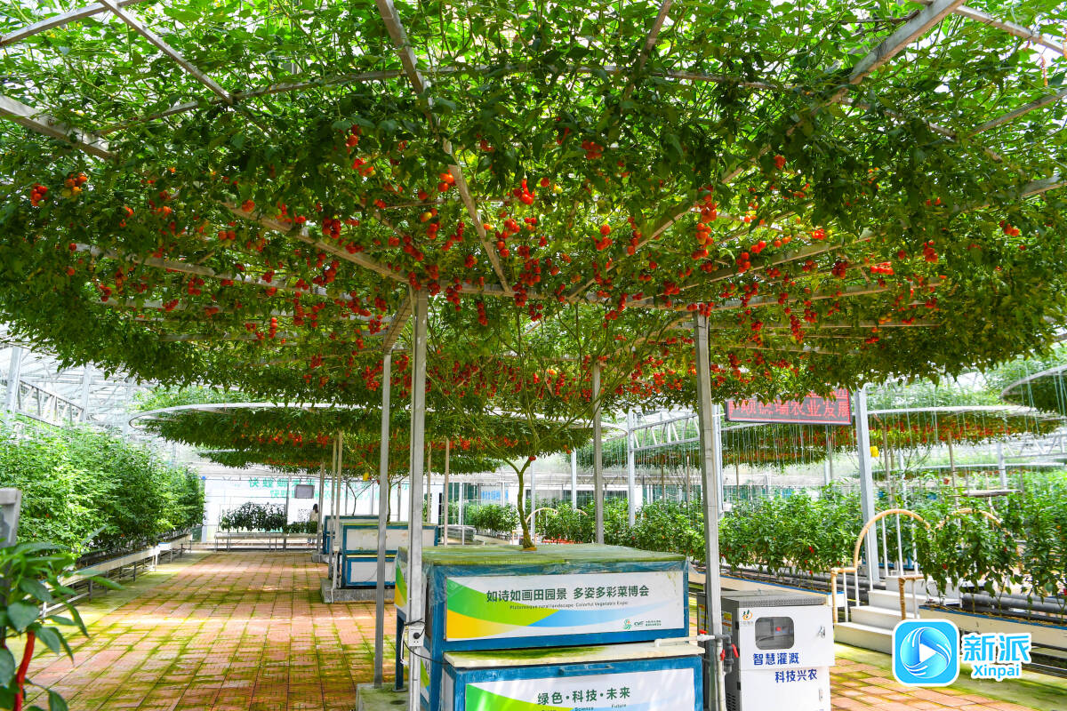 菜博会现场,冠幅150平米的西红柿树累计结果6000斤。