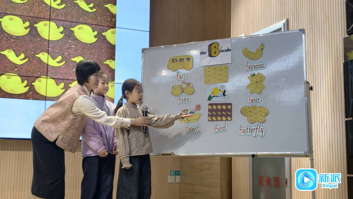 孙术梅老师带着孩子们一起阅读图书《The Biscuits》。