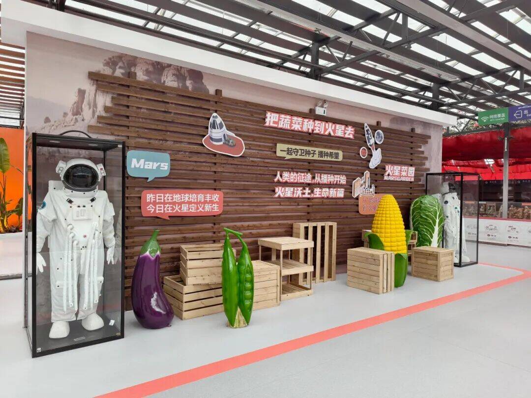 三号馆元宇宙技术让你沉浸式体验“在火星种菜”的神奇;四号馆变身珍奇植物馆,热带果树、珍稀食用菌让你大开眼界;十一号馆“花博苑”以“菜+花”融合打造绝美景观;八号馆融合地域文化、清廉文化的蔬艺作品;五号馆致敬农圣贾思勰的特色景观。这里,蔬艺景观玩出新花样!
